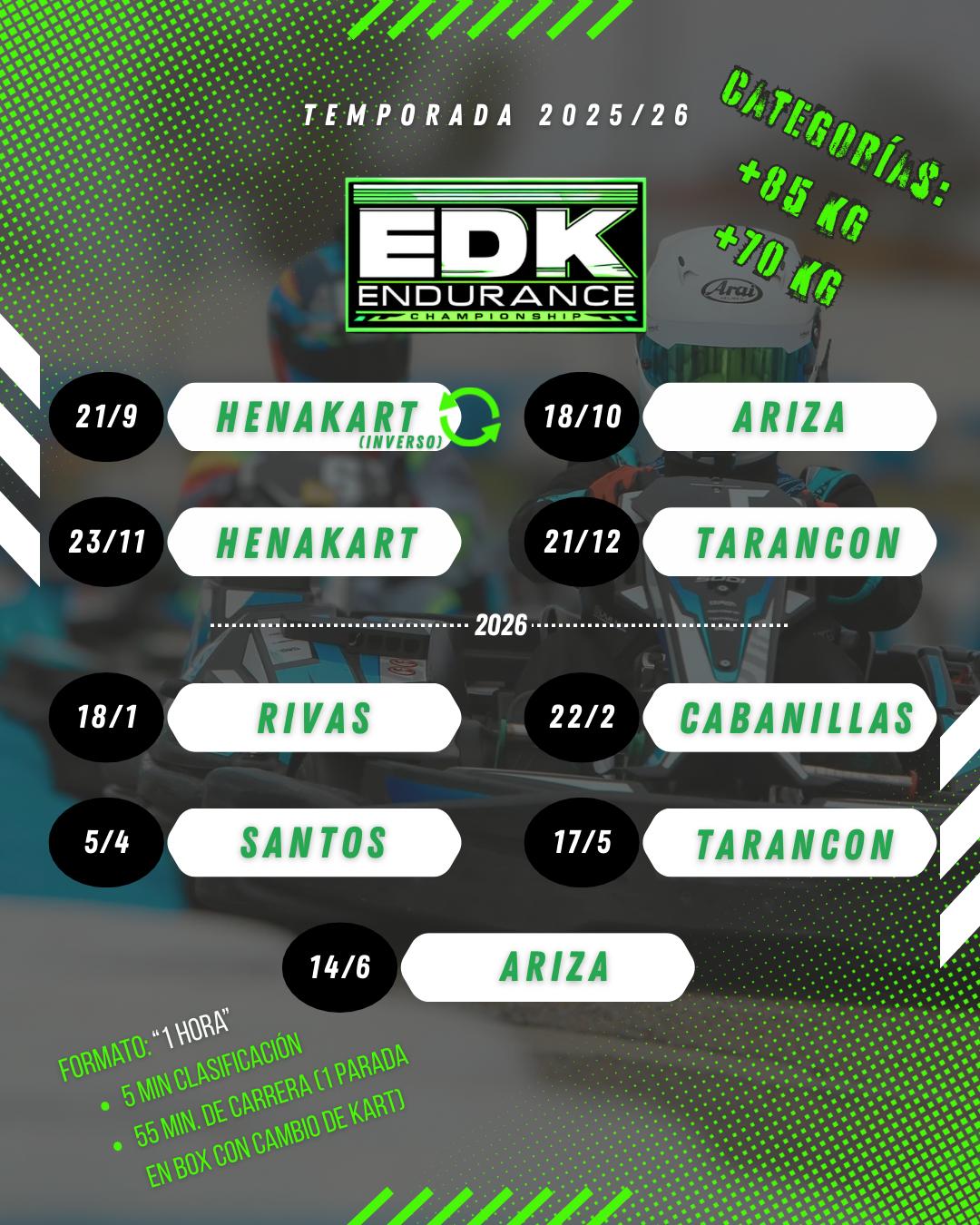 Descripción: Se abona una previa reserva de la carrera de 15 € mediante una reserva en (www.escueladekart.com) y se abonan 100 € directamente en el evento.